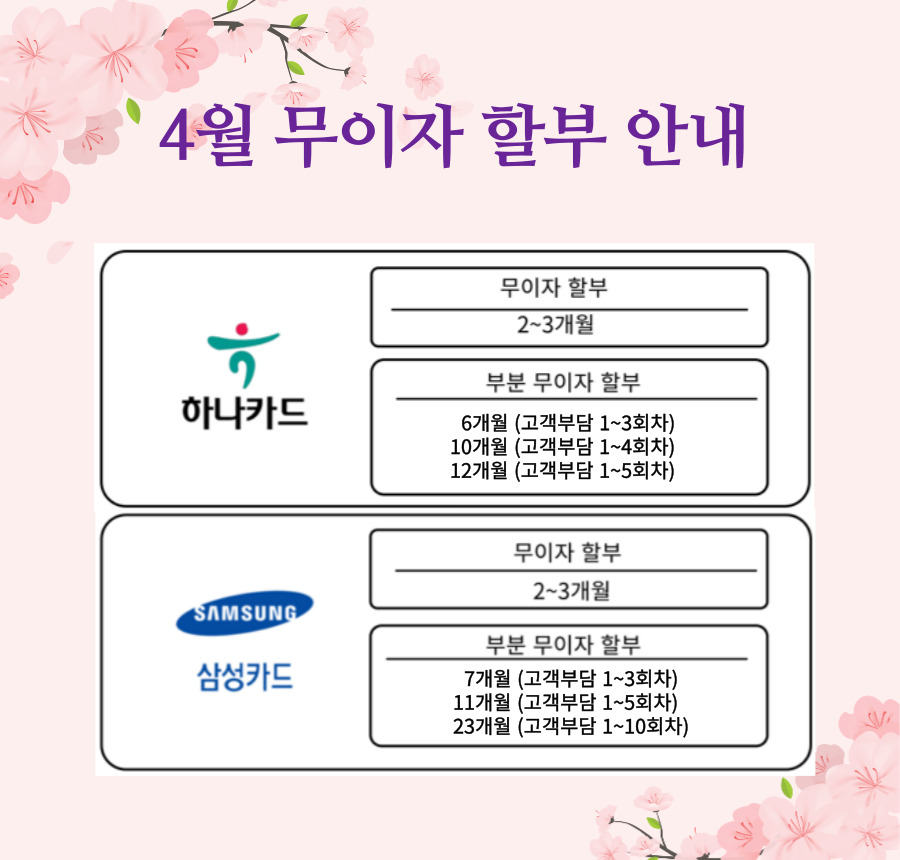 삼성카드를 제외한 나머지 모든 카드는 현재 일시불 결제만 가능하도록 변경되었습니다. ( 현대카드 결제 불가 )
