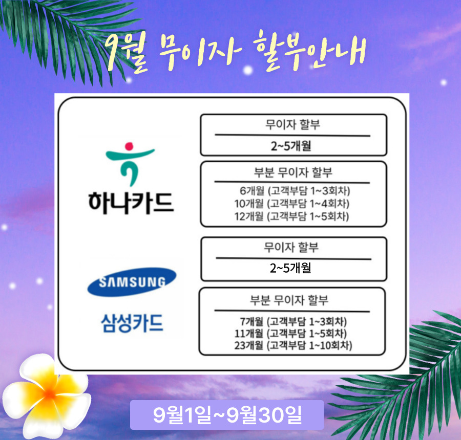 2025년 9월 무이자 할부 안내