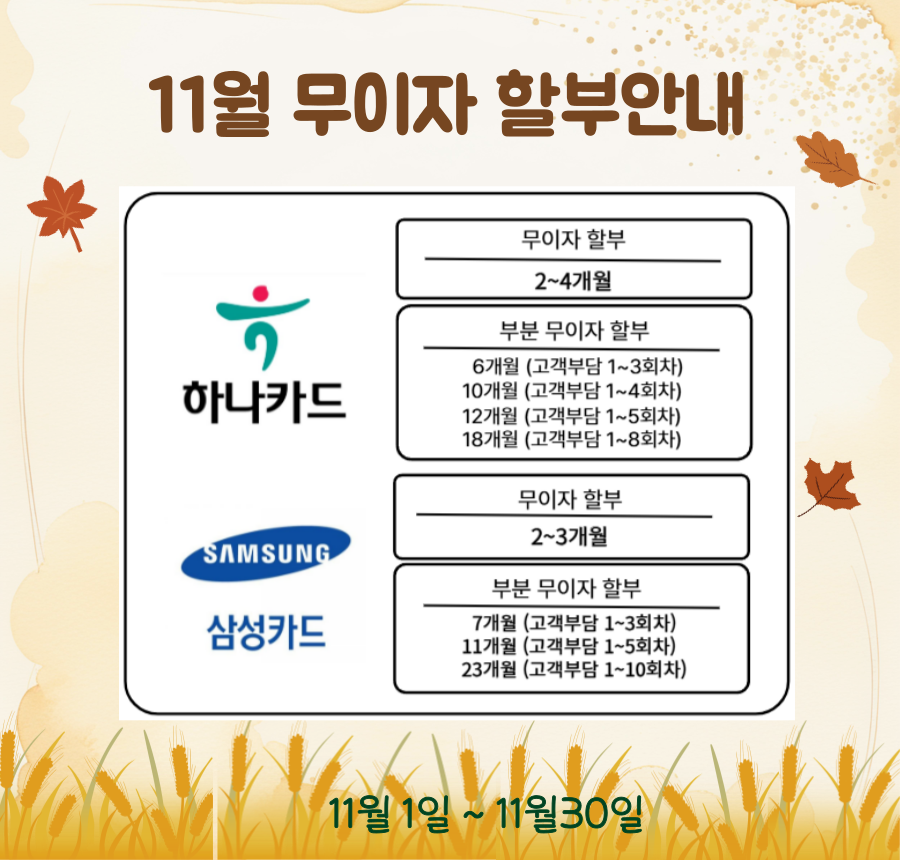 2025년 11월 무이자 할부 안내