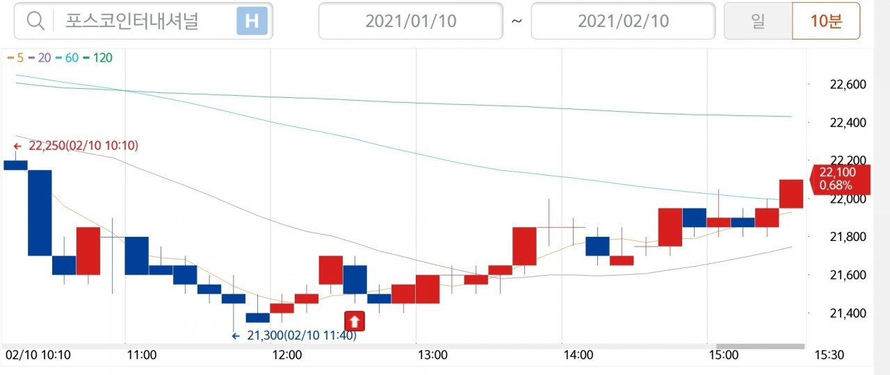 오늘은 무강에서 언급해 주신 포스코인터내셔널 2구간 매매를 했습니다. 종가 최고가에 나왔습니다. 월요일에 더 올라갈 것 같긴 한데, 제가 지금 크게 물려 있는 것이 있어서 마음이 편하지 않습니다. 알려드릴까요?^^