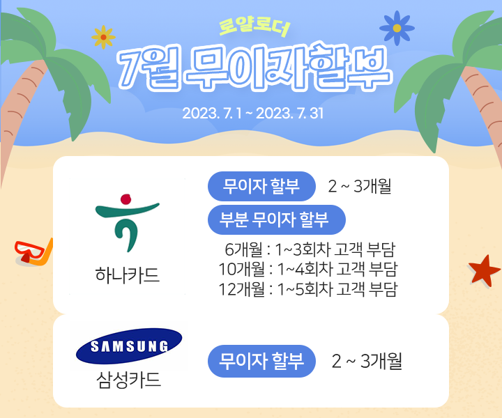 * 하나외환카드는 현재 일시불 변경이 지연되고 있어 할부결제가 가능하지만 불시에 일시불로 전환될 예정입니다.