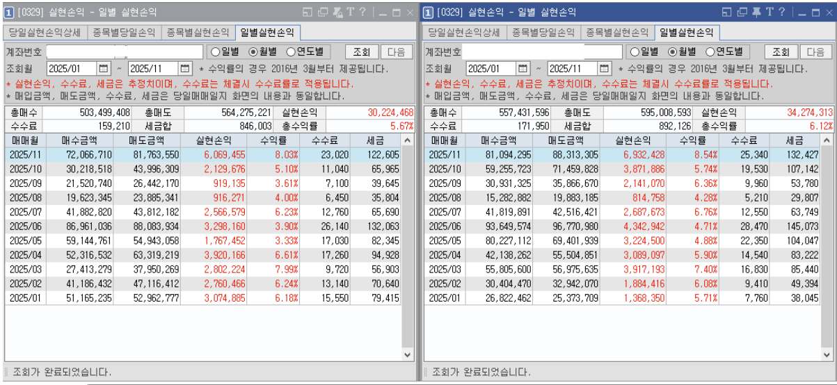 1월~11월 수익